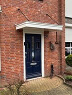 Deze deurluifel heeft zijn klassieke karakter te danken aan de mooie hardhouten gootlijsten en aluminium kraaltrim. Samen met de zwart gecoate trekstangen geeft deze luifel een sjieke , klassieke uitstraling aan uw woning.